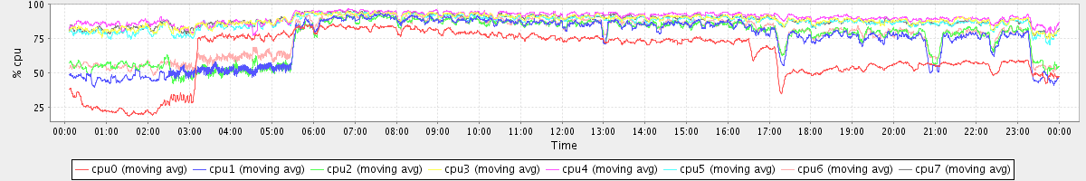 avg(cpu0) = 1.69 avg(cpu1) = 0.30 avg(cpu2) = 0.27 avg(cpu3) = 0.11 avg(cpu4) = 0.09 avg(cpu5) = 0.12 avg(cpu6) = 0.23 avg(cpu7) = 0.11