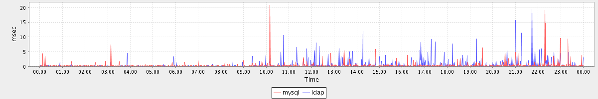 avg(mysql) = 0.37 avg(ldap) = 0.48