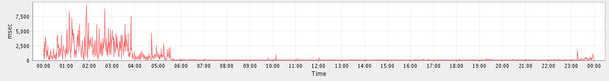 avg(SyncGalRequest) = 13316.79 avg(ModifyContactRequest) = 592.30 avg(BackupQueryRequest) = 620.60 avg(CancelAppointmentRequest) = 450.60 avg(MaintainTablesRequest) = 283894.00 avg(GetQuotaUsageRequest) = 3331.00 avg(ConvActionRequest.delete) = 697.89 avg(SendMsgRequest) = 500.56 avg(BackupRequest) = 406277.00 avg(FolderActionRequest.empty) = 9975.73