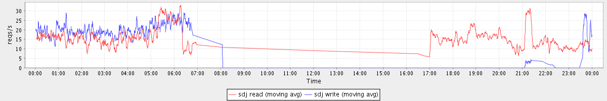 avg(sda read) = 3.23 avg(sda write) = 3.39