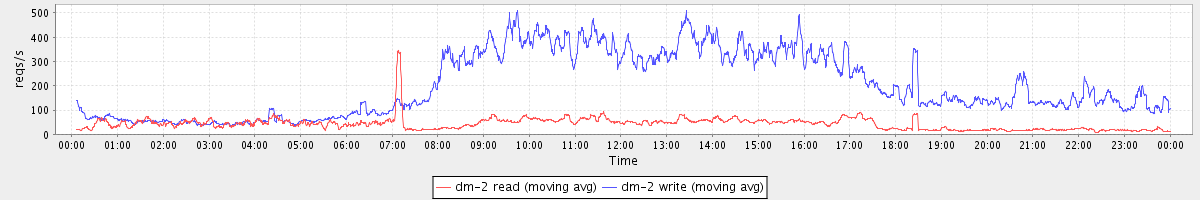 avg(dm-0 read) = 3346.24 avg(dm-0 write) = 421.18