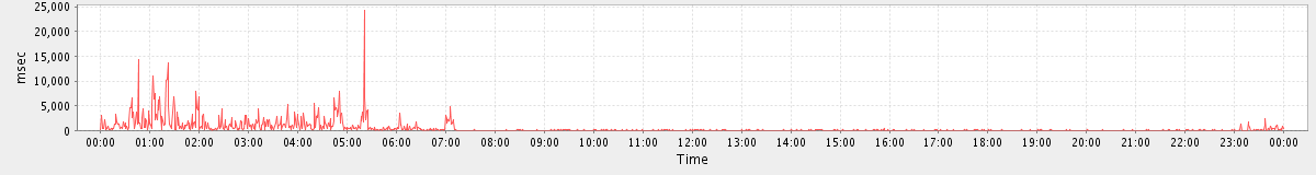 max(SearchConvRequest) = 66.00 max(MsgActionRequest.move) = 193.00 max(MsgActionRequest.update) = 105.00 max(NoOpRequest) = 192.00 max(GetFolderRequest) = 151.00 max(SyncRequest) = 300.00 max(GetMsgRequest) = 134.00 max(GetAppointmentRequest) = 103.00 max(SearchRequest) = 102.00 max(MsgActionRequest.delete) = 311.00