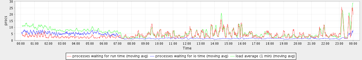 avg(processes waiting for run time) = 3.31 avg(processes waiting for io time) = 2.03 avg(load average (1 min)) = 5.90