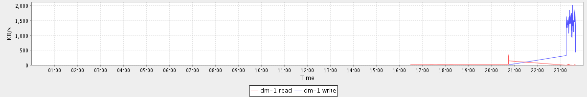 avg(dm-1 read) = 0.39 avg(dm-1 write) = 25.06