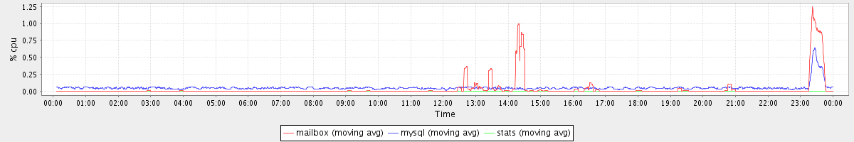 avg(mailbox) = 0.03 avg(mysql) = 0.05 avg(stats) = 0.00