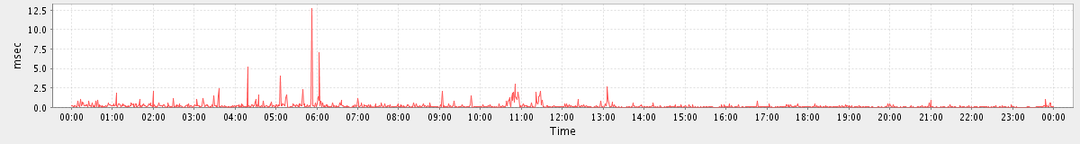 max(AuthRequest) = 125.00 max(NoOpRequest) = 182.00 max(GetFolderRequest) = 574.00 max(SyncRequest) = 385.00 max(GetMsgRequest) = 2317.00 max(GetAppointmentRequest) = 2227.00 max(SearchRequest) = 168.00 max(GetContactsRequest) = 315.00 max(GetInfoRequest) = 128.00 max(MsgActionRequest.delete) = 224.00