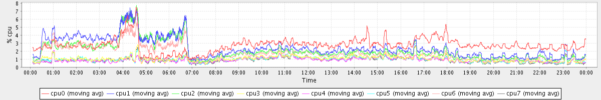 avg(cpu0) = 0.19 avg(cpu1) = 0.11 avg(cpu2) = 0.08 avg(cpu3) = 0.00 avg(cpu4) = 0.00 avg(cpu5) = 0.00 avg(cpu6) = 0.08 avg(cpu7) = 0.00