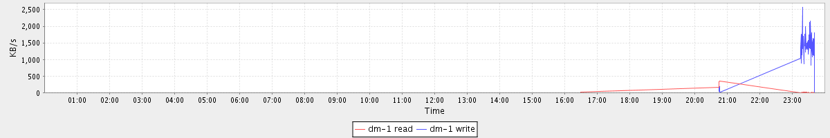 avg(dm-1 read) = 0.40 avg(dm-1 write) = 26.64
