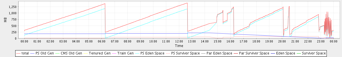 avg(total) = 747.64 avg(PS Old Gen) = 116.16 avg(CMS Old Gen) = 0.00 avg(Tenured Gen) = 0.00 avg(Train Gen) = 0.00 avg(PS Eden Space) = 590.15 avg(PS Survivor Space) = 41.33 avg(Par Eden Space) = 0.00 avg(Par Survivor Space) = 0.00 avg(Eden Space) = 0.00 avg(Survivor Space) = 0.00