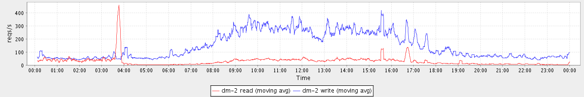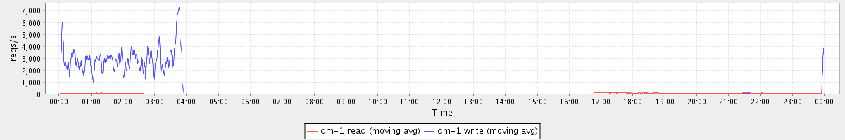 avg(dm-1 read) = 22.38 avg(dm-1 write) = 470.79