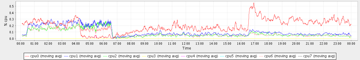 avg(cpu0) = 0.20 avg(cpu1) = 0.11 avg(cpu2) = 0.08 avg(cpu3) = 0.00 avg(cpu4) = 0.00 avg(cpu5) = 0.00 avg(cpu6) = 0.07 avg(cpu7) = 0.00