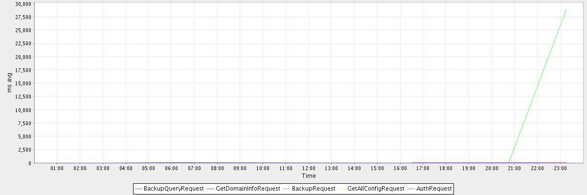avg(BackupQueryRequest) = 179.00 avg(GetDomainInfoRequest) = 2.26 avg(BackupRequest) = 14503.00 avg(GetAllConfigRequest) = 1.00 avg(AuthRequest) = 55.75