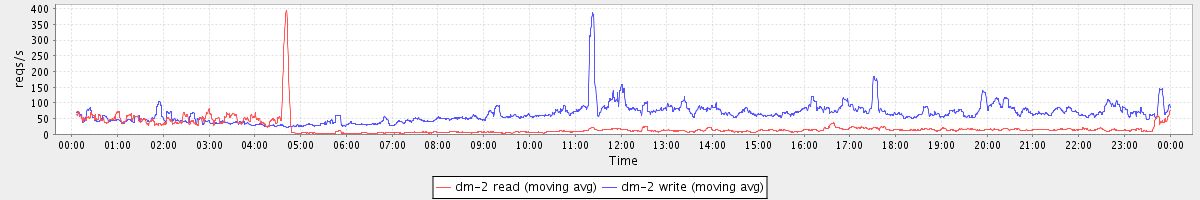 avg(dm-2 read) = 377.76 avg(dm-2 write) = 549.30