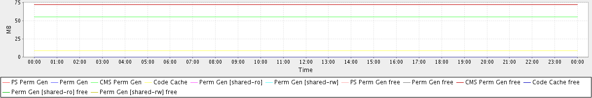 avg(PS Perm Gen) = 0.00 avg(Perm Gen) = 0.00 avg(CMS Perm Gen) = 55.48 avg(Code Cache) = 8.92 avg(Perm Gen [shared-ro]) = 0.00 avg(Perm Gen [shared-rw]) = 0.00 avg(PS Perm Gen free) = 0.00 avg(Perm Gen free) = 0.00 avg(CMS Perm Gen free) = 72.52 avg(Code Cache free) = 0.12 avg(Perm Gen [shared-ro] free) = 0.00 avg(Perm Gen [shared-rw] free) = 0.00