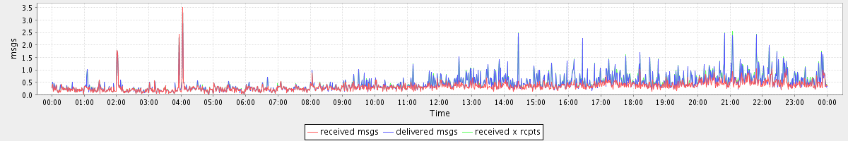 avg(received msgs) = 0.33 avg(delivered msgs) = 0.43 avg(received x rcpts) = 0.44