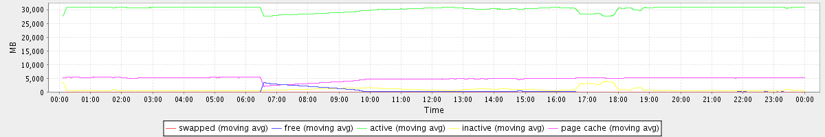 avg(swapped) = 0.25 avg(free) = 350.28 avg(active) = 30247.92 avg(inactive) = 906.13 avg(page cache) = 4843.53