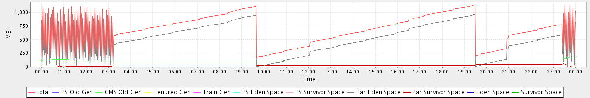 avg(total) = 685.56 avg(PS Old Gen) = 0.00 avg(CMS Old Gen) = 145.95 avg(Tenured Gen) = 0.00 avg(Train Gen) = 0.00 avg(PS Eden Space) = 0.00 avg(PS Survivor Space) = 0.00 avg(Par Eden Space) = 515.12 avg(Par Survivor Space) = 24.49 avg(Eden Space) = 0.00 avg(Survivor Space) = 0.00