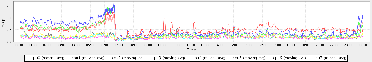 avg(cpu0) = 0.24 avg(cpu1) = 0.12 avg(cpu2) = 0.08 avg(cpu3) = 0.00 avg(cpu4) = 0.00 avg(cpu5) = 0.00 avg(cpu6) = 0.08 avg(cpu7) = 0.00