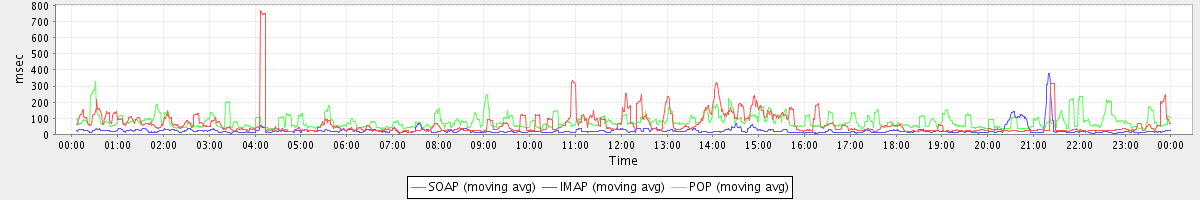 Host zm03.stanford.edu: Mailboxd: Response Time by Client Protocol