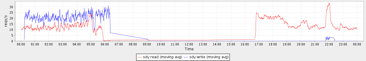avg(sda read) = 35.38 avg(sda write) = 52.03