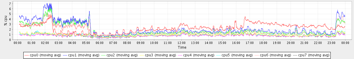 avg(cpu0) = 0.20 avg(cpu1) = 0.10 avg(cpu2) = 0.08 avg(cpu3) = 0.00 avg(cpu4) = 0.00 avg(cpu5) = 0.00 avg(cpu6) = 0.06 avg(cpu7) = 0.00