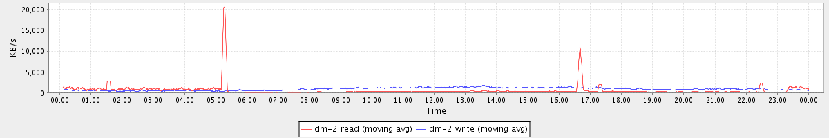avg(dm-1 read) = 25.13 avg(dm-1 write) = 713.32