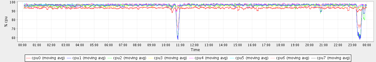 avg(cpu0) = 93.26 avg(cpu1) = 95.59 avg(cpu2) = 95.36 avg(cpu3) = 95.73 avg(cpu4) = 96.81 avg(cpu5) = 96.71 avg(cpu6) = 96.14 avg(cpu7) = 96.84