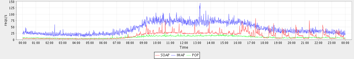 Host zm09.stanford.edu: Mailboxd: Request Rate by Client Protocol