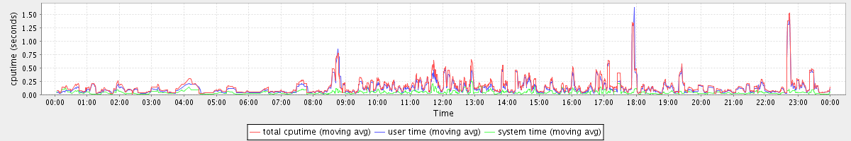 avg(total cputime) = 0.09 avg(user time) = 0.07 avg(system time) = 0.02