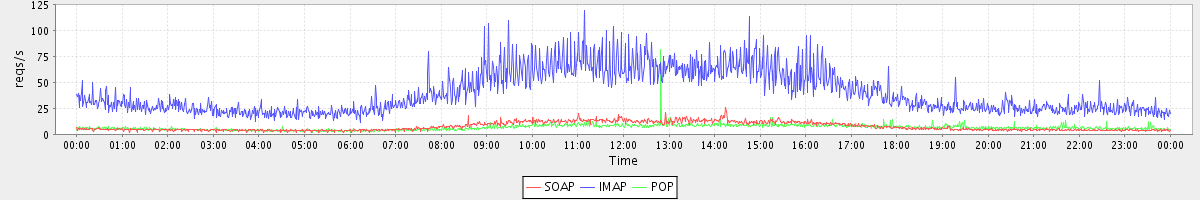 Host zm01.stanford.edu: Mailboxd: Request Rate by Client Protocol