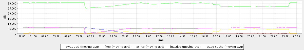 avg(swapped) = 0.27 avg(free) = 603.24 avg(active) = 29044.40 avg(inactive) = 1825.79 avg(page cache) = 5169.61
