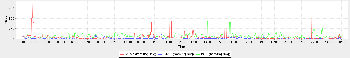 Host zm05.stanford.edu: Mailboxd: Response Time by Client Protocol