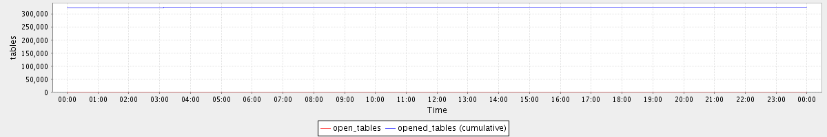 avg(open_tables) = 397.00 avg(opened_tables (cumulative)) = 324950.10