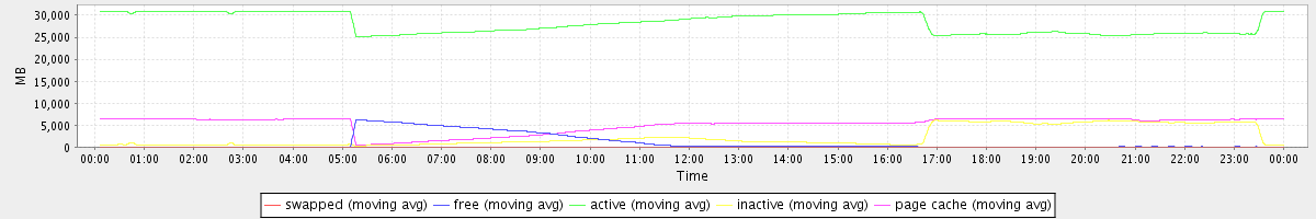 avg(swapped) = 0.25 avg(free) = 1029.76 avg(active) = 28178.80 avg(inactive) = 2299.97 avg(page cache) = 5147.69