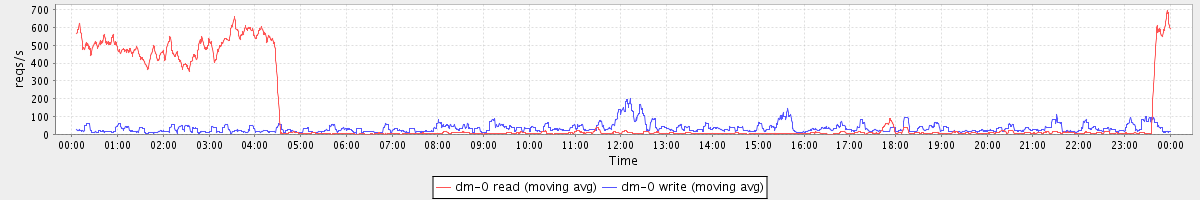 avg(dm-1 read) = 30.39 avg(dm-1 write) = 606.95