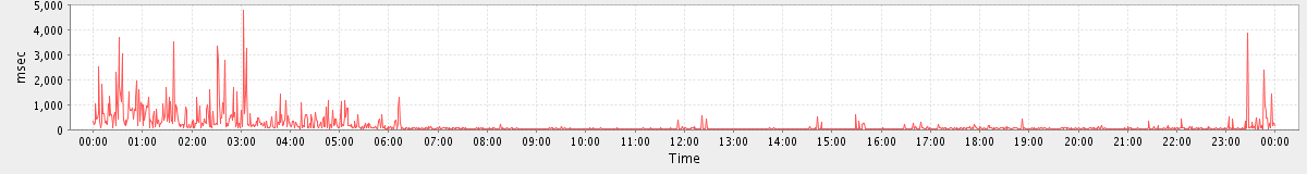 max(GetMsgRequest) = 2037.00 max(GetAppointmentRequest) = 1958.00 max(SearchRequest) = 67.00 max(SearchConvRequest) = 49.00 max(MsgActionRequest.move) = 67.00 max(MsgActionRequest.update) = 46.00 max(ConvActionRequest.trash) = 33.00 max(NoOpRequest) = 75.00 max(GetFolderRequest) = 224.00 max(SyncRequest) = 81.00