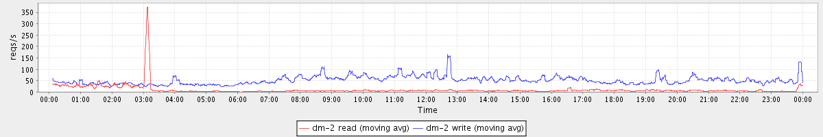 avg(dm-0 read) = 74.46 avg(dm-0 write) = 23.13