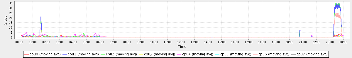 avg(cpu0) = 0.50 avg(cpu1) = 0.40 avg(cpu2) = 0.31 avg(cpu3) = 0.32 avg(cpu4) = 0.22 avg(cpu5) = 0.17 avg(cpu6) = 0.17 avg(cpu7) = 0.13