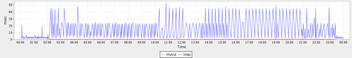 avg(mysql) = 0.30 avg(ldap) = 4.00