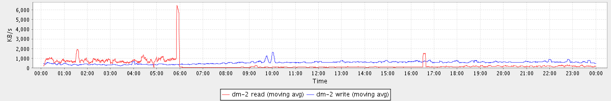 avg(dm-2 read) = 21.70 avg(dm-2 write) = 64.00