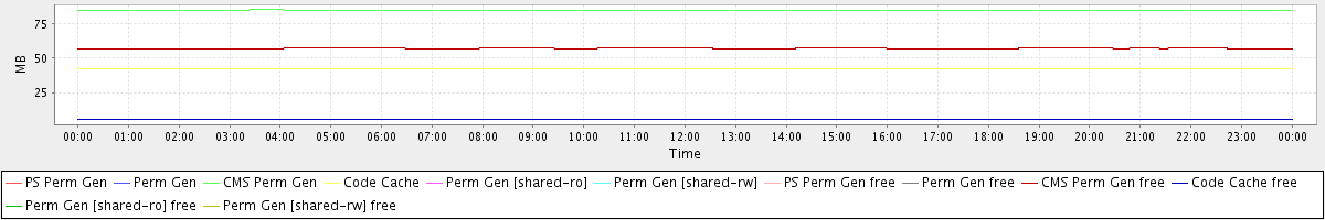 avg(PS Perm Gen) = 0.00 avg(Perm Gen) = 0.00 avg(CMS Perm Gen) = 84.85 avg(Code Cache) = 42.04 avg(Perm Gen [shared-ro]) = 0.00 avg(Perm Gen [shared-rw]) = 0.00 avg(PS Perm Gen free) = 0.00 avg(Perm Gen free) = 0.00 avg(CMS Perm Gen free) = 57.07 avg(Code Cache free) = 5.59 avg(Perm Gen [shared-ro] free) = 0.00 avg(Perm Gen [shared-rw] free) = 0.00