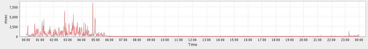 max(GetMsgRequest) = 26.00 max(SearchRequest) = 404.00 max(SearchConvRequest) = 35.00 max(MsgActionRequest.move) = 23.00 max(GetInfoRequest) = 15.00 max(MsgActionRequest.delete) = 58.00 max(ConvActionRequest.trash) = 24.00 max(NoOpRequest) = 87.00 max(GetFolderRequest) = 58.00 max(SyncRequest) = 119.00