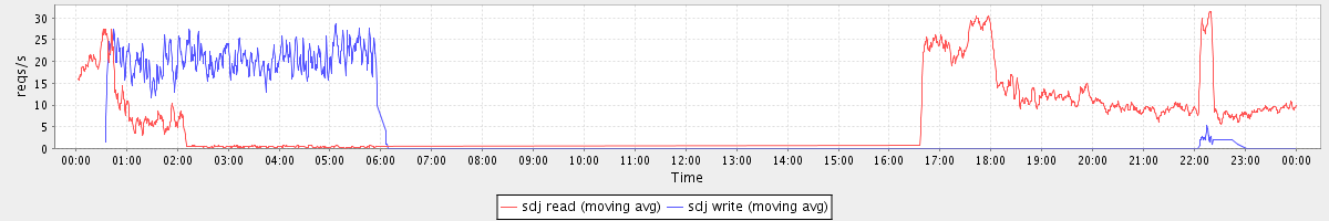 avg(sda1 read) = 22.49 avg(sda1 write) = 43.28