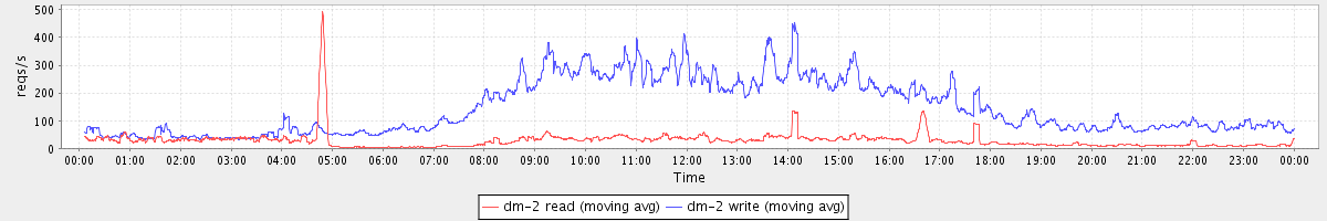 avg(dm-2 read) = 28.43 avg(dm-2 write) = 144.93