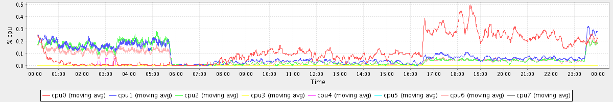avg(cpu0) = 0.12 avg(cpu1) = 0.08 avg(cpu2) = 0.06 avg(cpu3) = 0.00 avg(cpu4) = 0.00 avg(cpu5) = 0.00 avg(cpu6) = 0.05 avg(cpu7) = 0.00