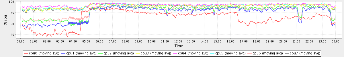 avg(cpu0) = 62.09 avg(cpu1) = 74.98 avg(cpu2) = 78.99 avg(cpu3) = 90.09 avg(cpu4) = 92.65 avg(cpu5) = 90.83 avg(cpu6) = 80.44 avg(cpu7) = 89.99