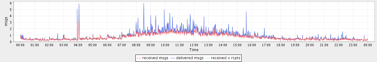 avg(received msgs) = 0.71 avg(delivered msgs) = 0.87 avg(received x rcpts) = 0.87