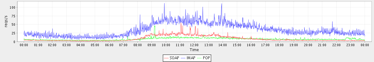 Host zm09.stanford.edu: Mailboxd: Request Rate by Client Protocol