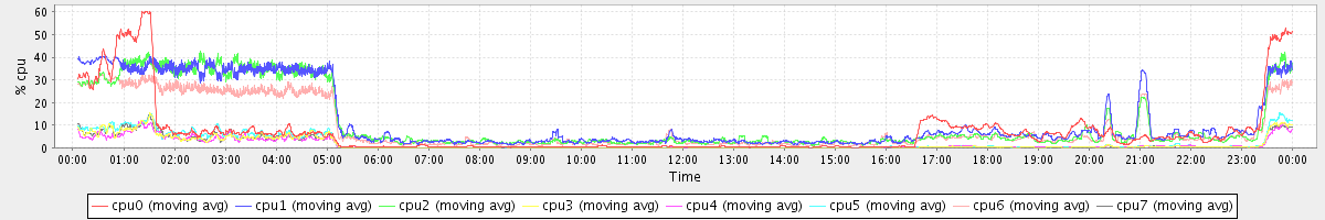 avg(cpu0) = 1.34 avg(cpu1) = 0.26 avg(cpu2) = 0.24 avg(cpu3) = 0.10 avg(cpu4) = 0.10 avg(cpu5) = 0.10 avg(cpu6) = 0.20 avg(cpu7) = 0.08