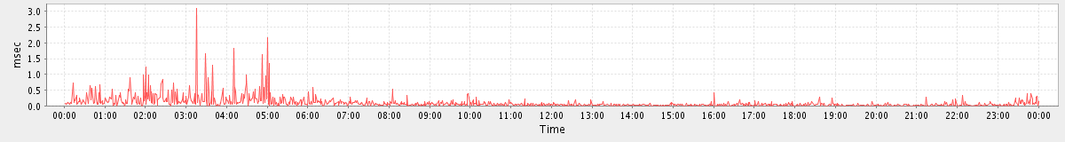 avg(SyncGalRequest) = 1642.29 avg(BackupQueryRequest) = 305.20 avg(GetQuotaUsageRequest) = 3209.00 avg(ConvActionRequest.delete) = 633.87 avg(DeleteAccountRequest) = 244829.00 avg(AddMsgRequest) = 404.18 avg(SendMsgRequest) = 387.40 avg(BackupRequest) = 368906.00 avg(FolderActionRequest.empty) = 4943.00 avg(MsgActionRequest.!read) = 748.00